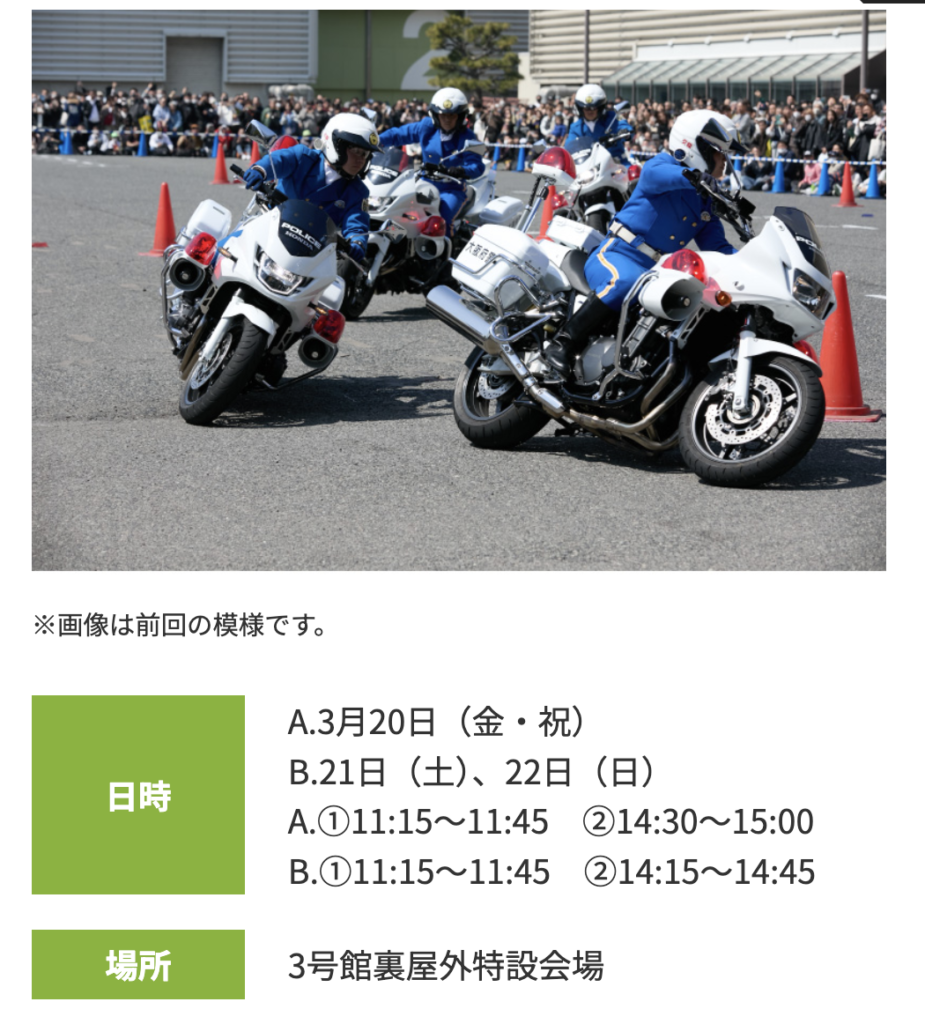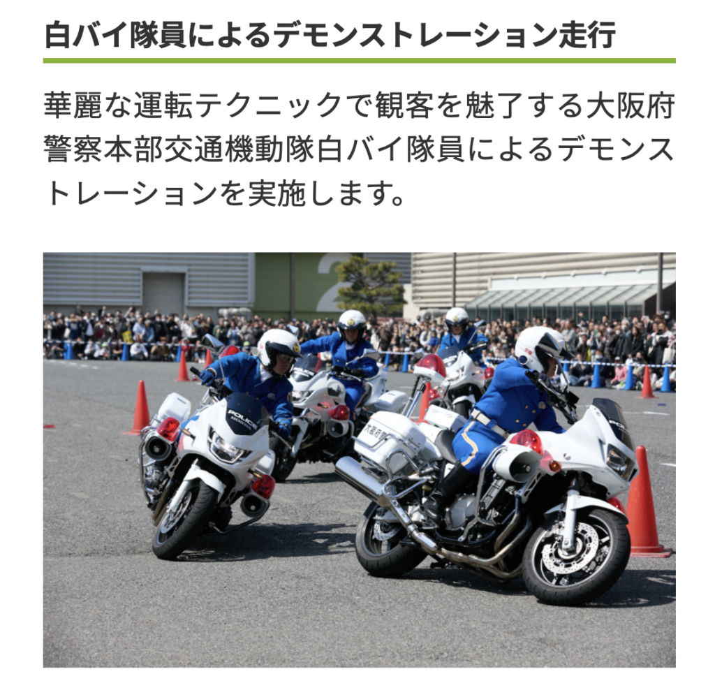 白バイのデモンストレーションは絶対に見た方がいいと思います。